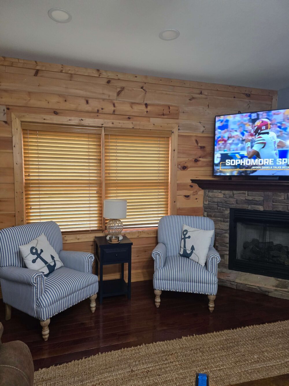 View amazing sunsets over Norris Lake from the balcony of this third floor lakefront condo. The balcony comes equipped with a large cooler on a stand, outside dining table for 6, and a gas grill. The master bedroom has a king size bed, flat screen with cable TV, a private bath with a jetted tub, and a separate shower. One guest room has a queen size bed and the other has a set of bunk beds (full bed on top and full bed on bottom). The bedroom with the bunk beds also has a SMART flat screen TV for guests. Both guest bedrooms share a full bathroom. The great room features a stacked stone gas fireplace and flat screen SMART TV. This condo comes with a full size washer & dryer, granite counter tops, and a fully equipped kitchen, even with crock pot. WiFi in the unit and a covered boat slip at Twin Cove Marina during your stay are included as guests of Spruce 302 Condo.